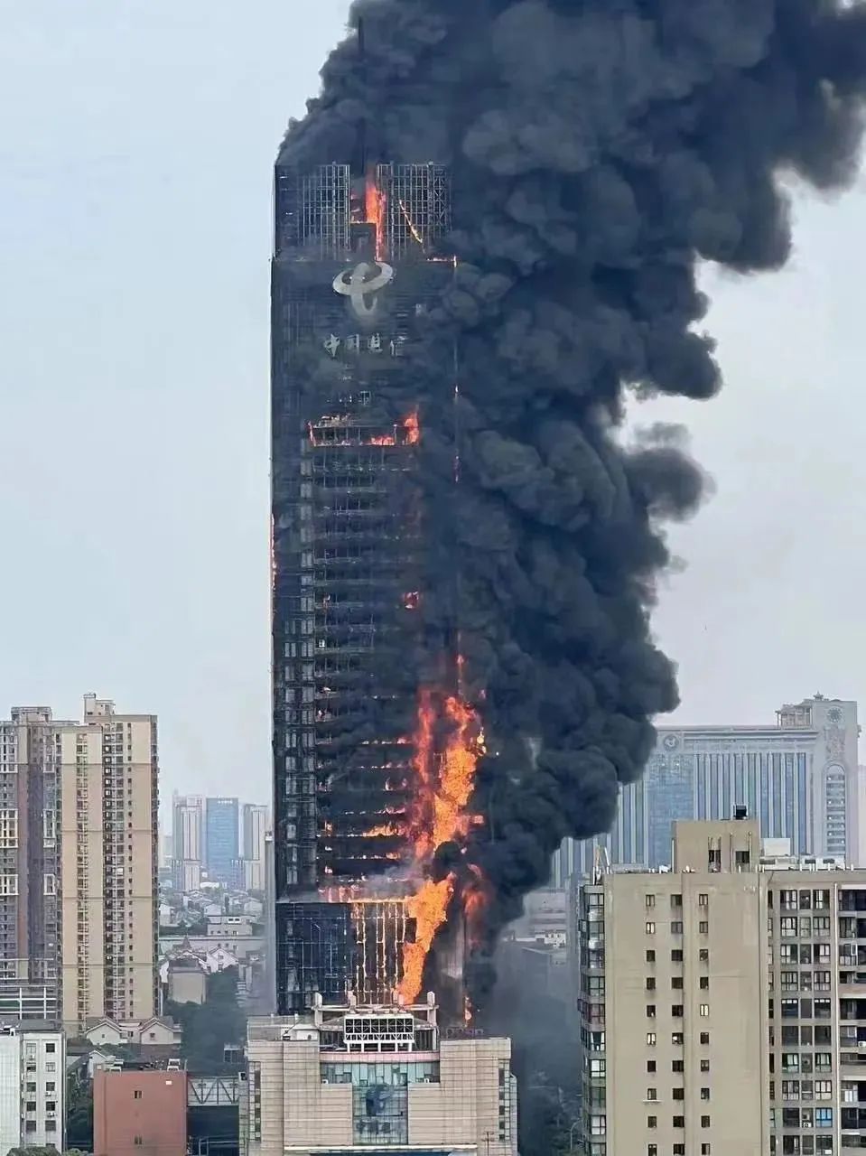 9月16日,位于湖南长沙的中国电信大楼突发火灾,现场浓烟滚滚,火势蔓延至数十层楼体。消防救援人员紧急奔赴现场后迅速将火势控制,扑灭了大楼明火。